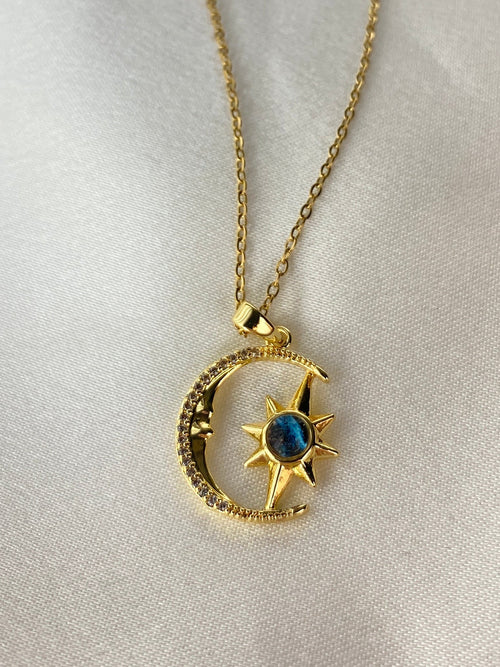 Gold Yaprak İnci Mavi Çelik Kolye -