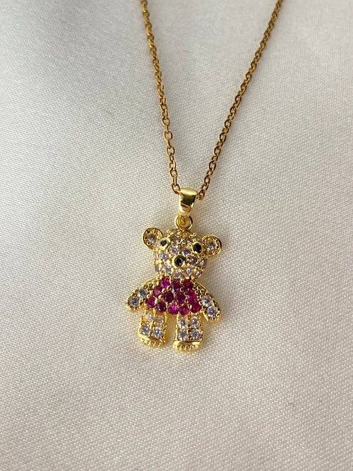 Kalp ve Taşlı Çelik Gold Kolye -