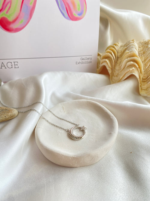 Lune Çelik Silver Taşlı Kolye -