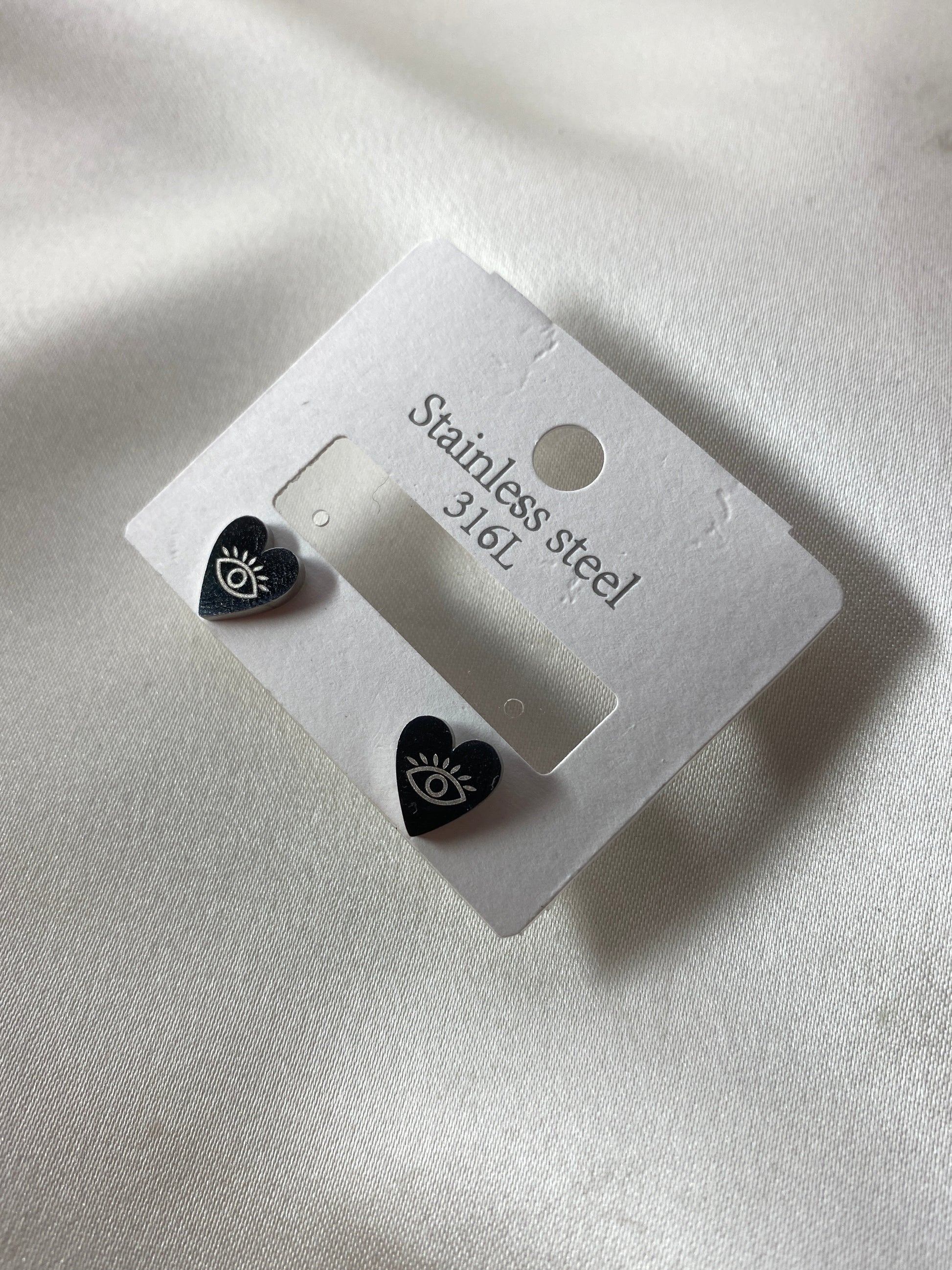 Göz Detaylı Kalp Çelik Silver Küpe