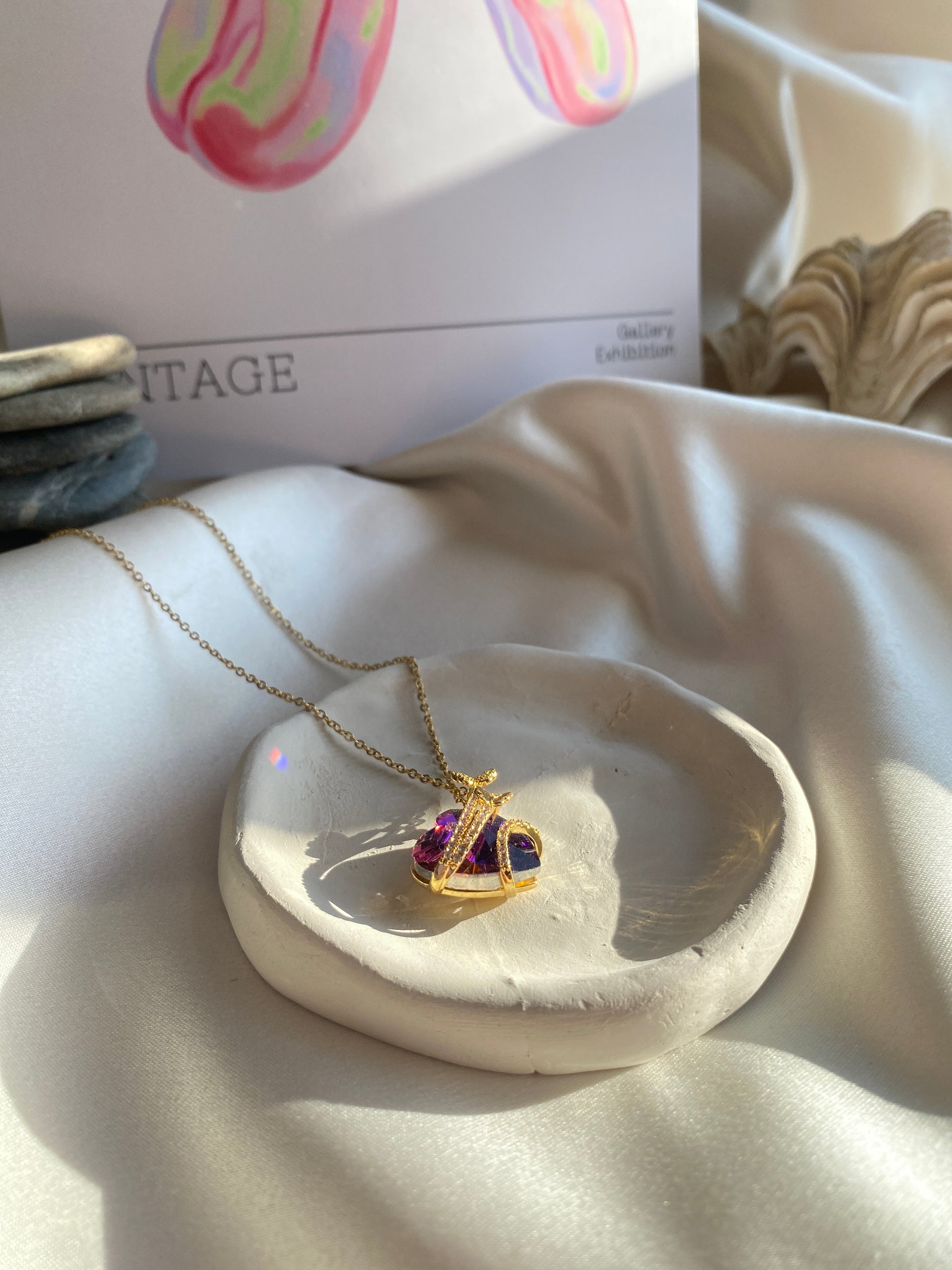 Kelebekli Mavi Taş Gold Çelik Kolye