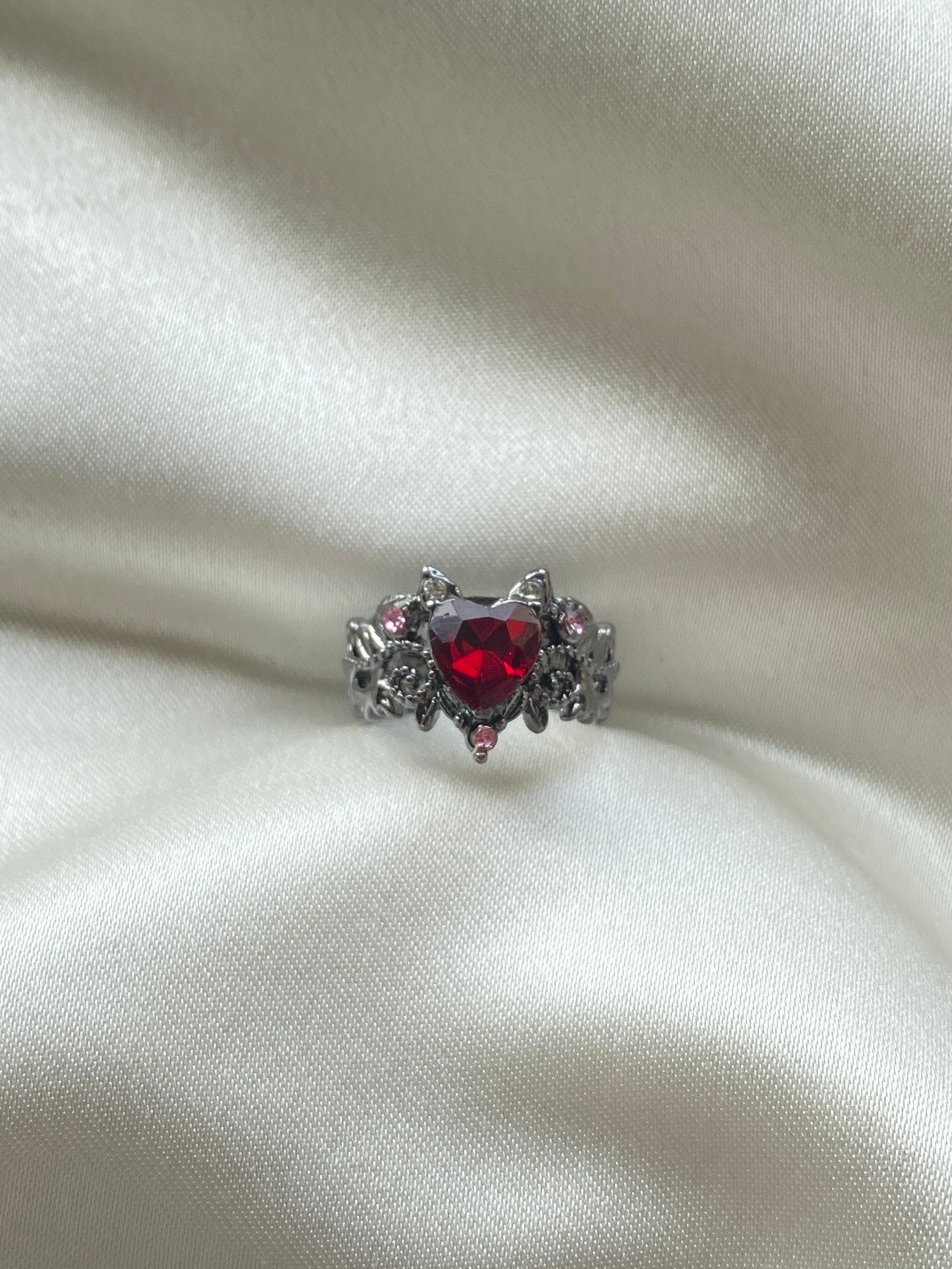 Kırmızı Kalp Taşlı Çelik Kolye