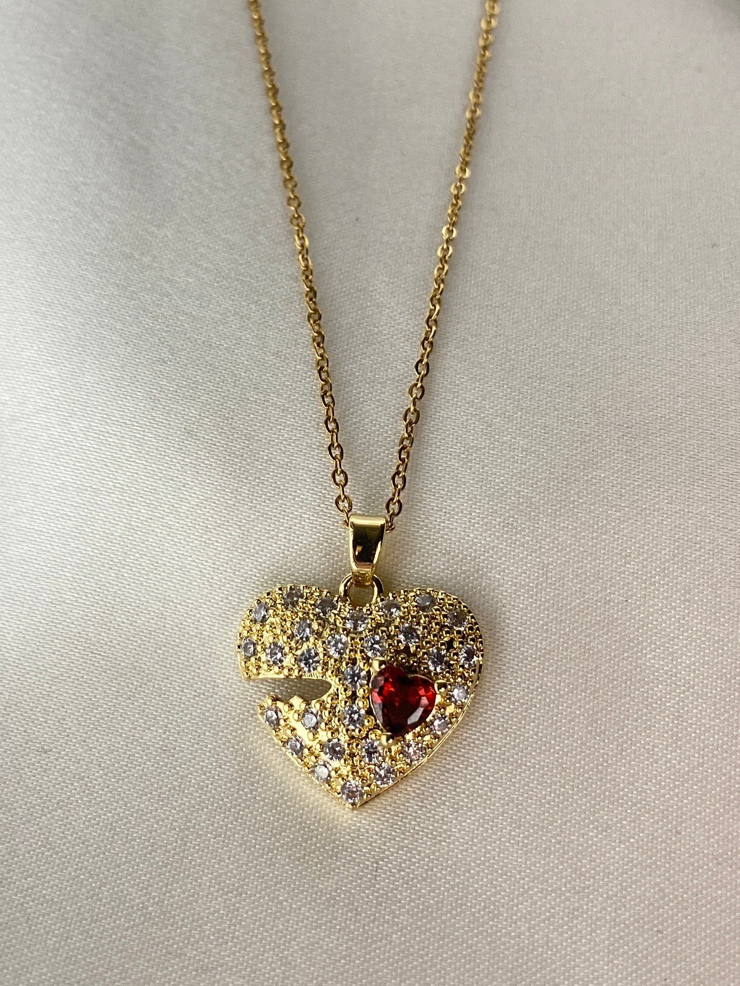 Kırmızı Taşlı Çelik Kolye