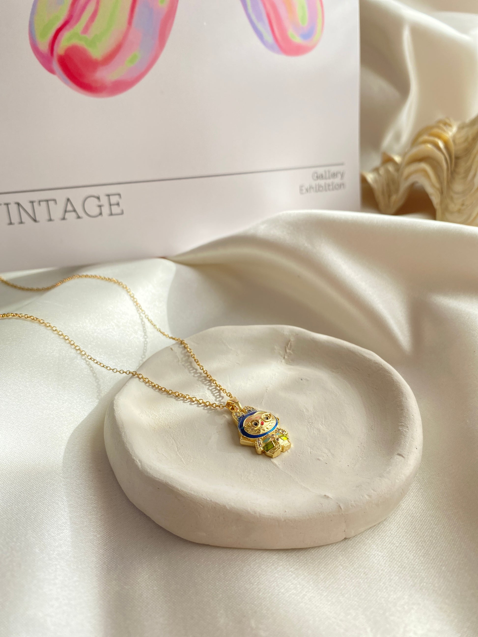 Labubu Mavi Gözlüklü Gold Çelik Kolye