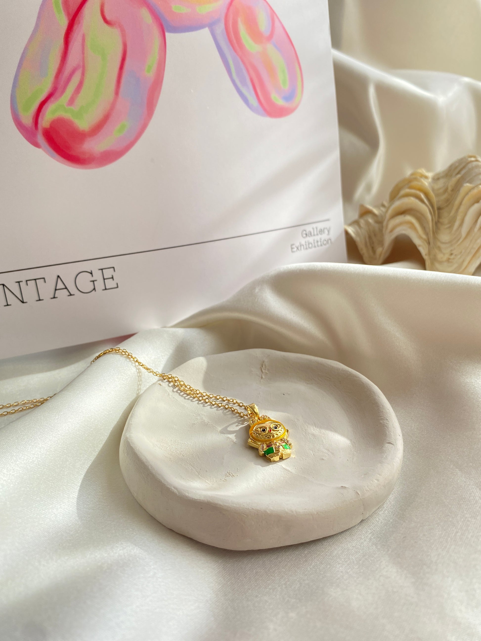 Labubu Turuncu Yeşil Gold Çelik Kolye