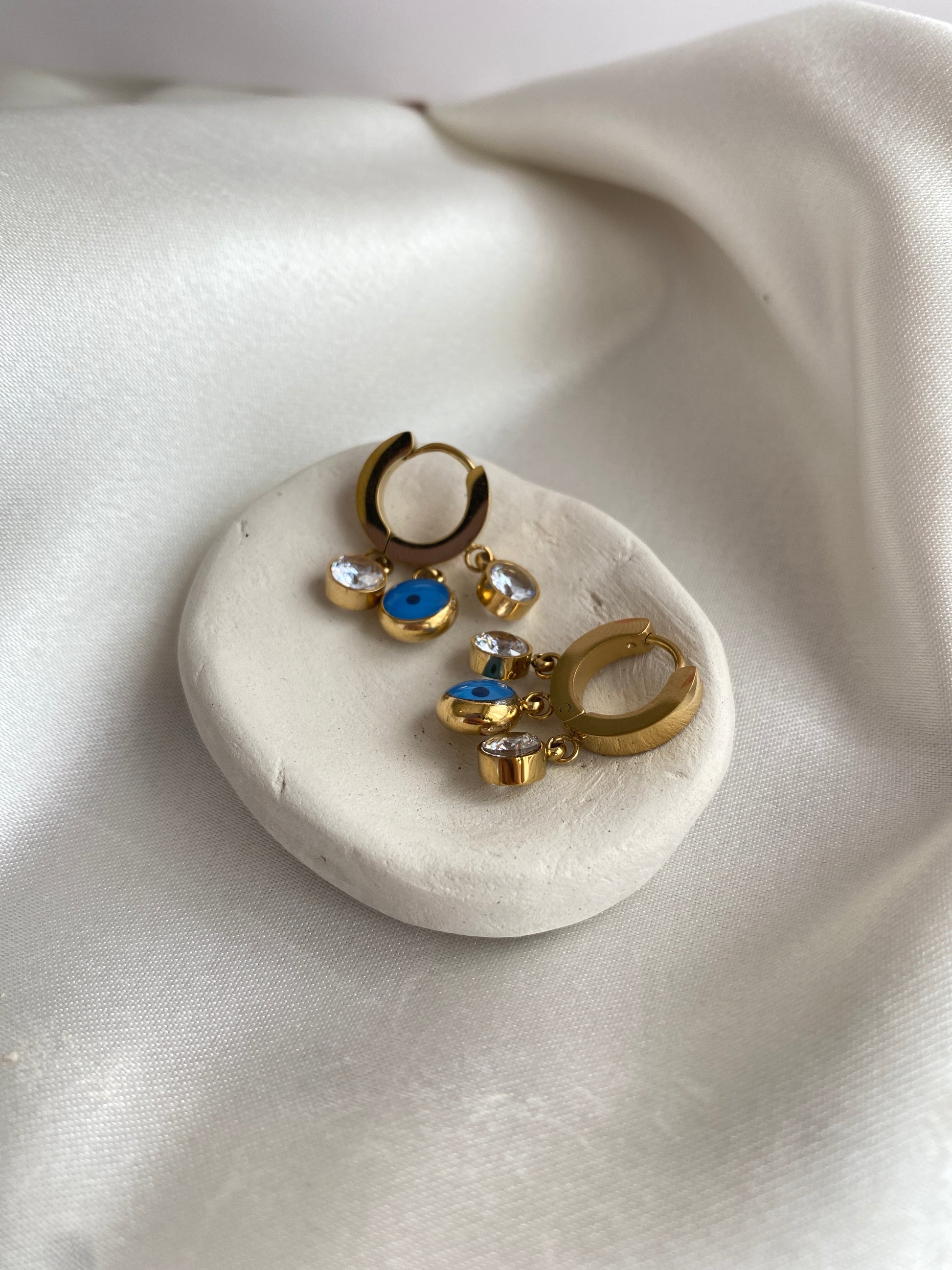 Lune Çelik Sallantılı Taşlı Küpe