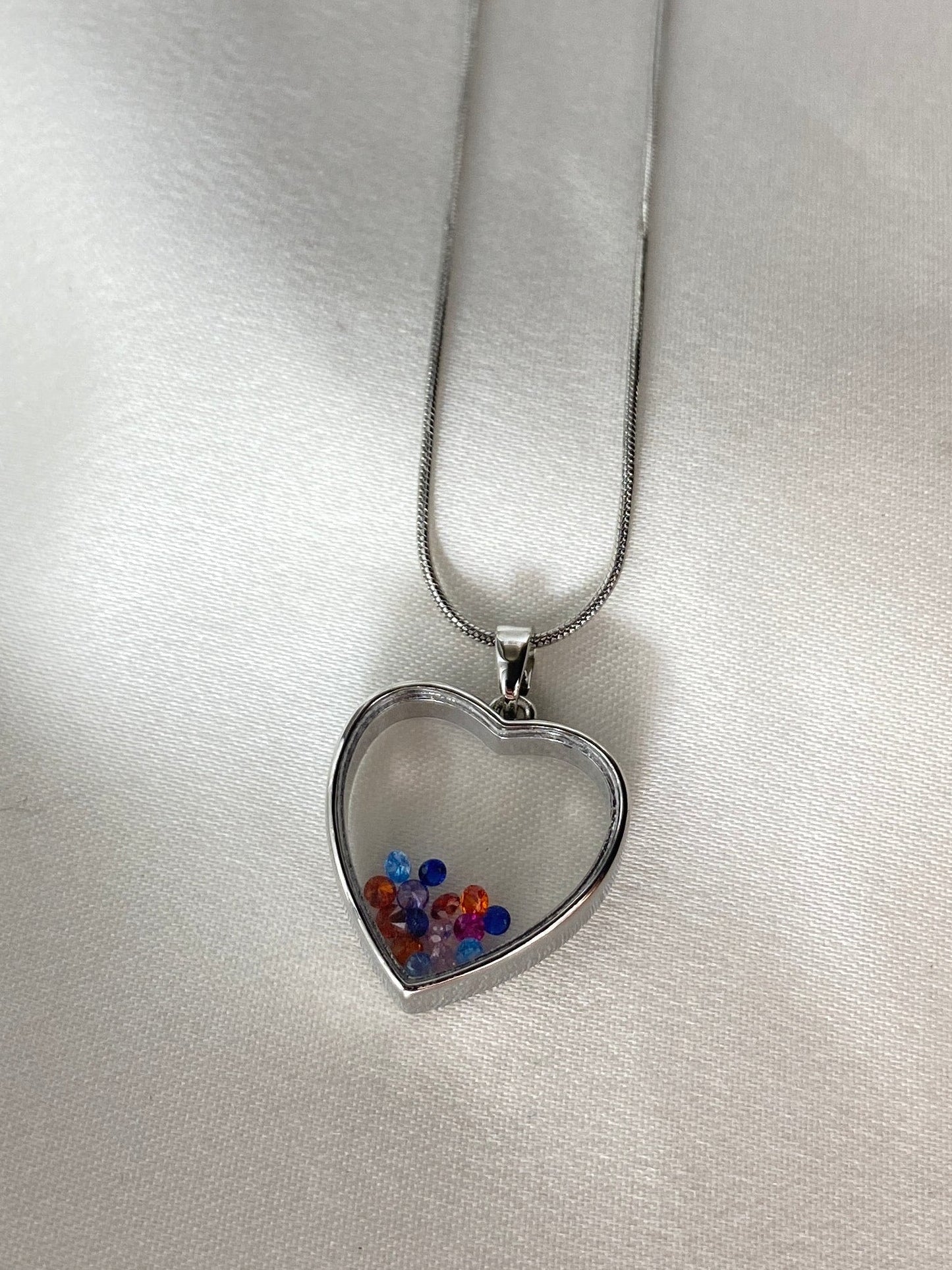 Renkli Taşlı Kalp Silver Çelik Kolye