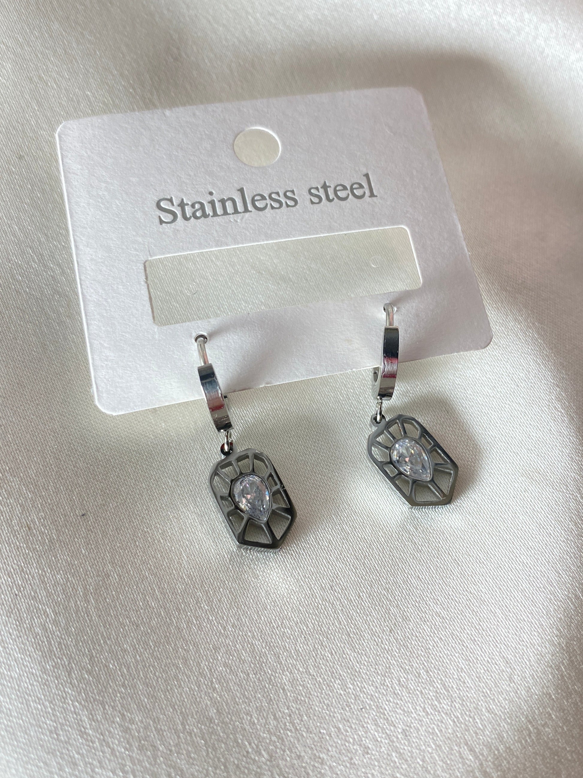 Taş Detaylı Çelik Küpe