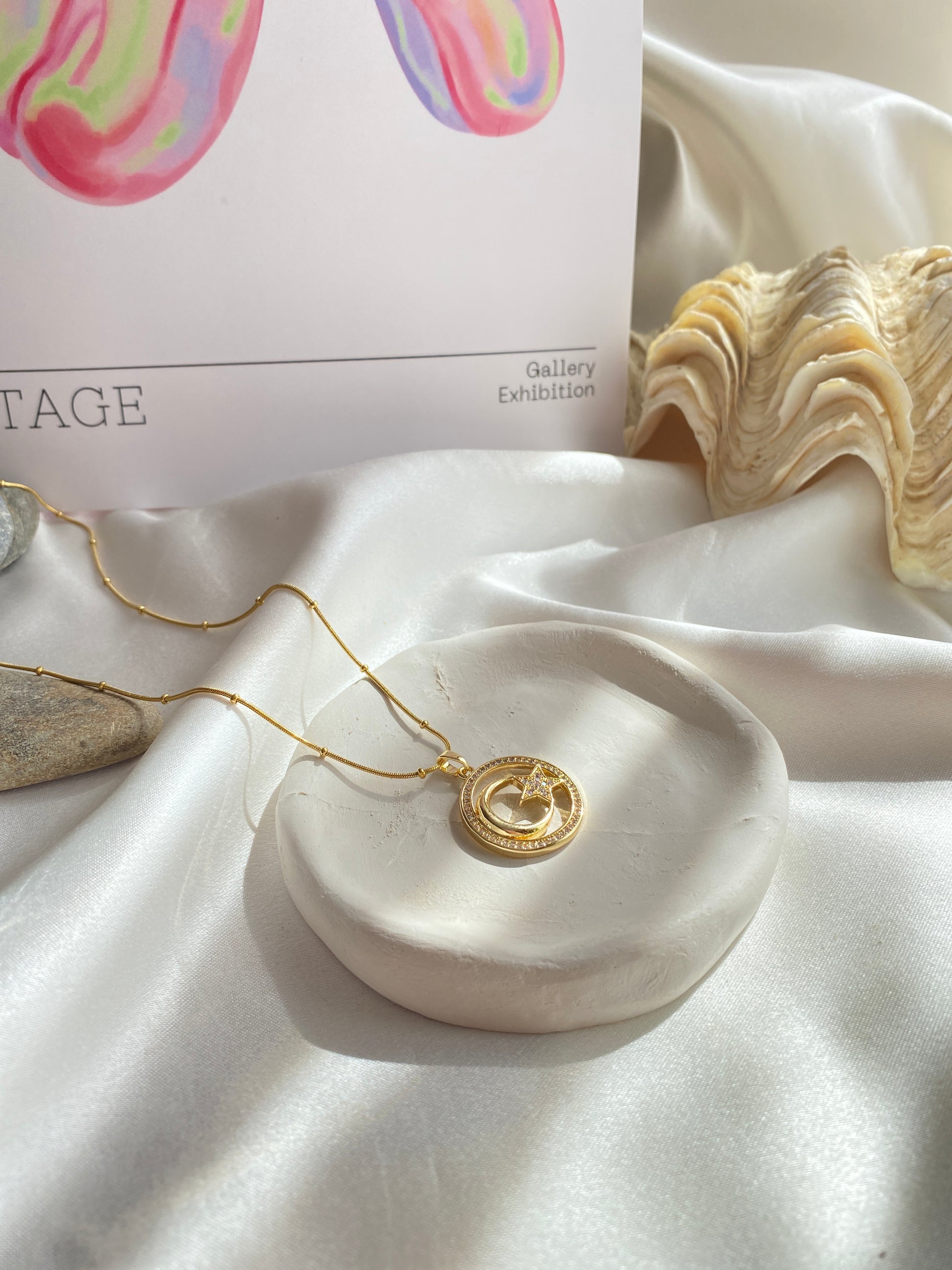 Taşlı Bayrak Gold Çerçeve İle Çelik Kolye