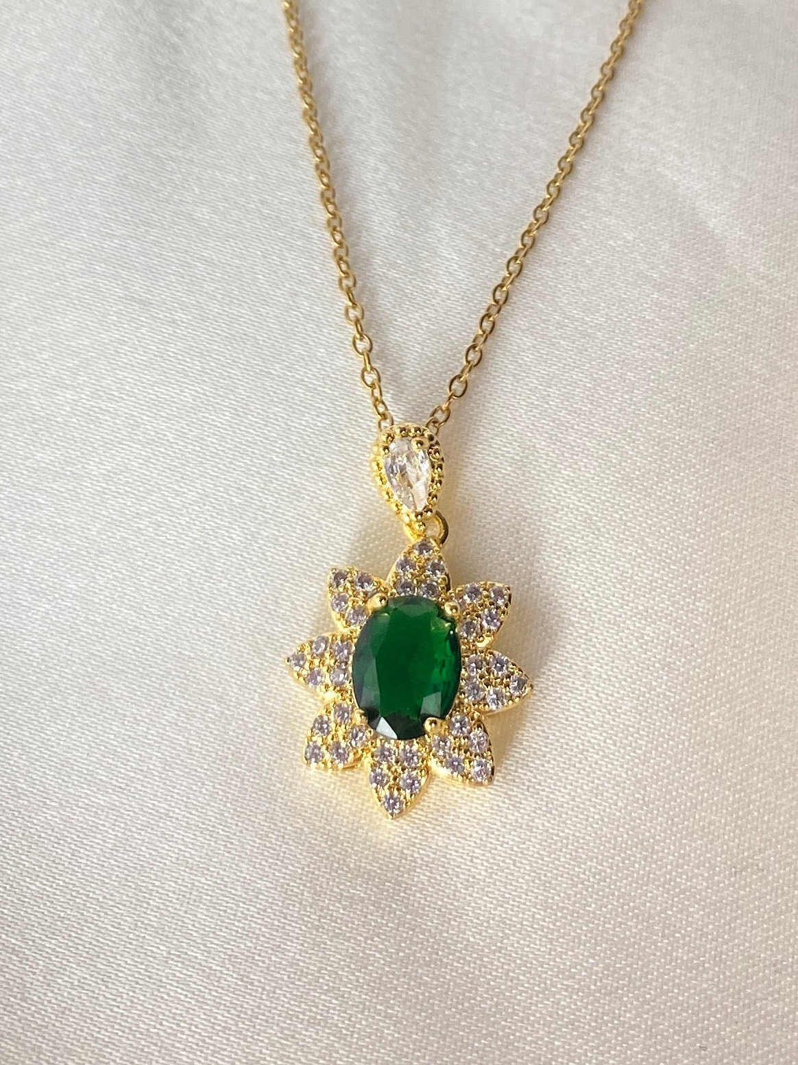 Yeşil Taşlı Çelik Kolye