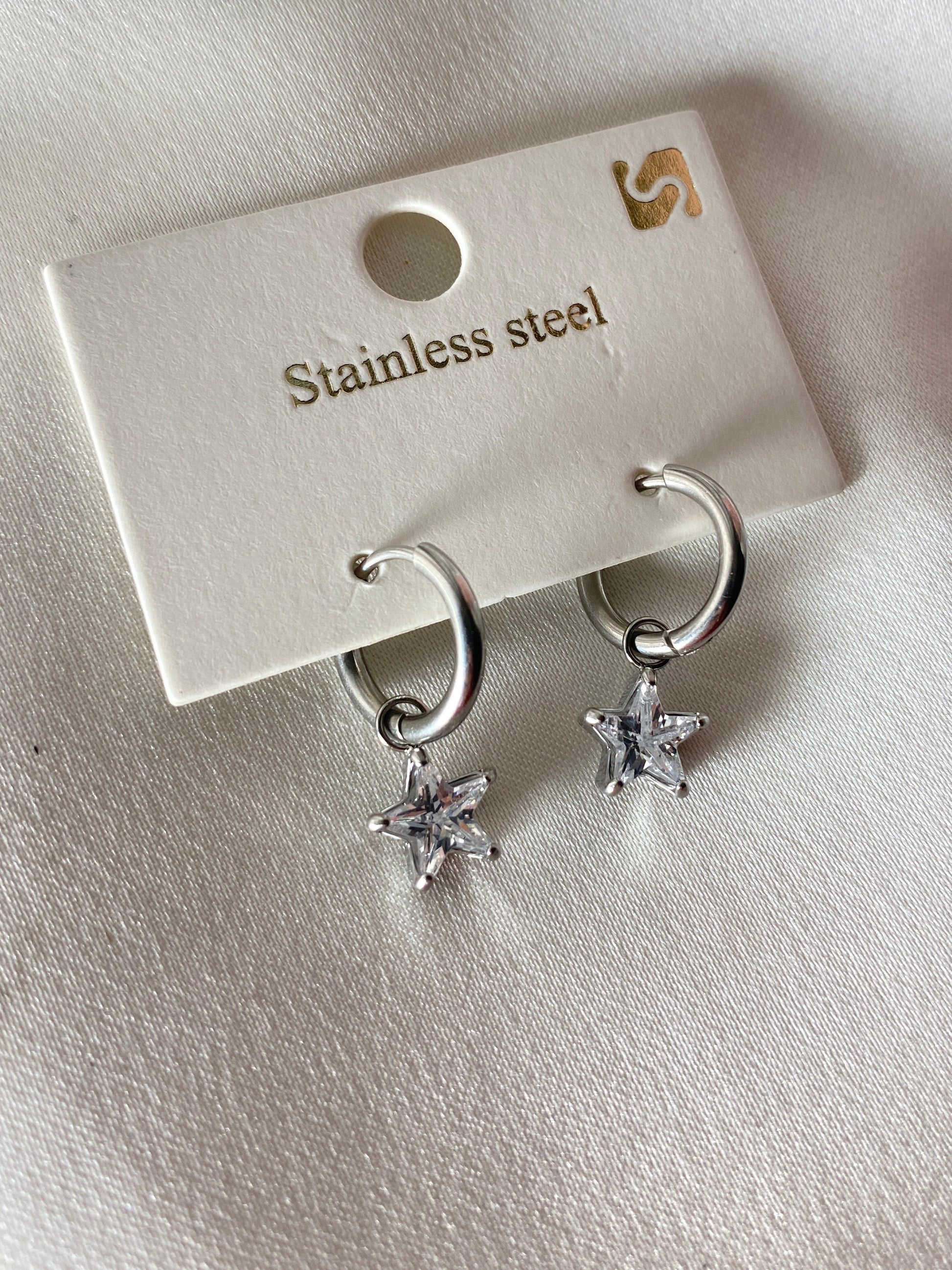 Yıldız Taşlı Çelik Küpe